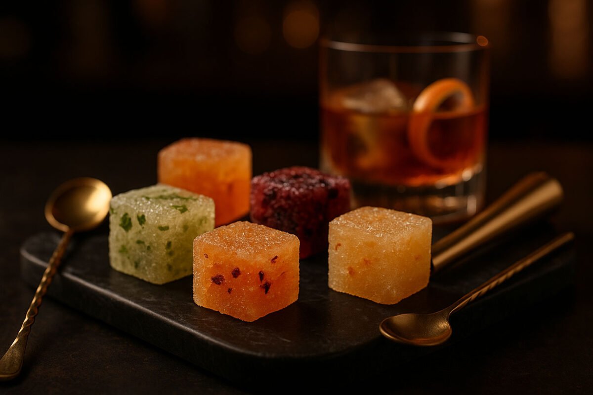 Craft cocktails instantly. Drop one cube into spirits or soda and watch it transform — infused with real fruit and herbs.